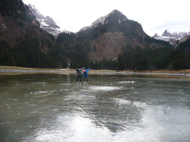Leider lag um Weihnachten und in der Altjahrswoche kein Schnee. Der Kälte tat dies keinen Abbruch und der Voralpsee glänzte mit seinem Schwarzeis. So genossen einige Einheimische die Riesen-Eisfläche: